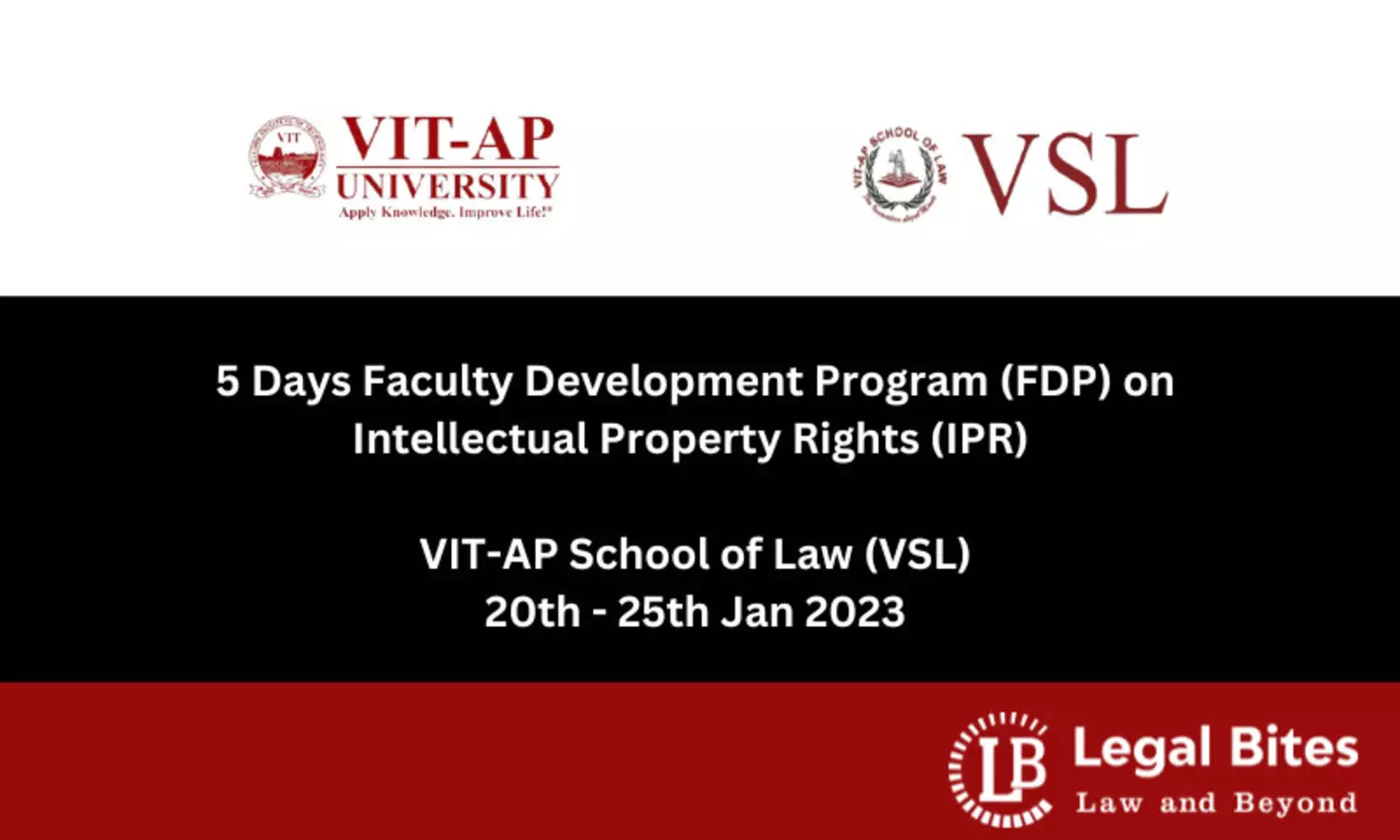 Five Days Faculty Development Program (FDP) on Intellectual Property Rights (IPR) | VIT-AP School of Law (VSL) | 20th - 25th Jan 2023