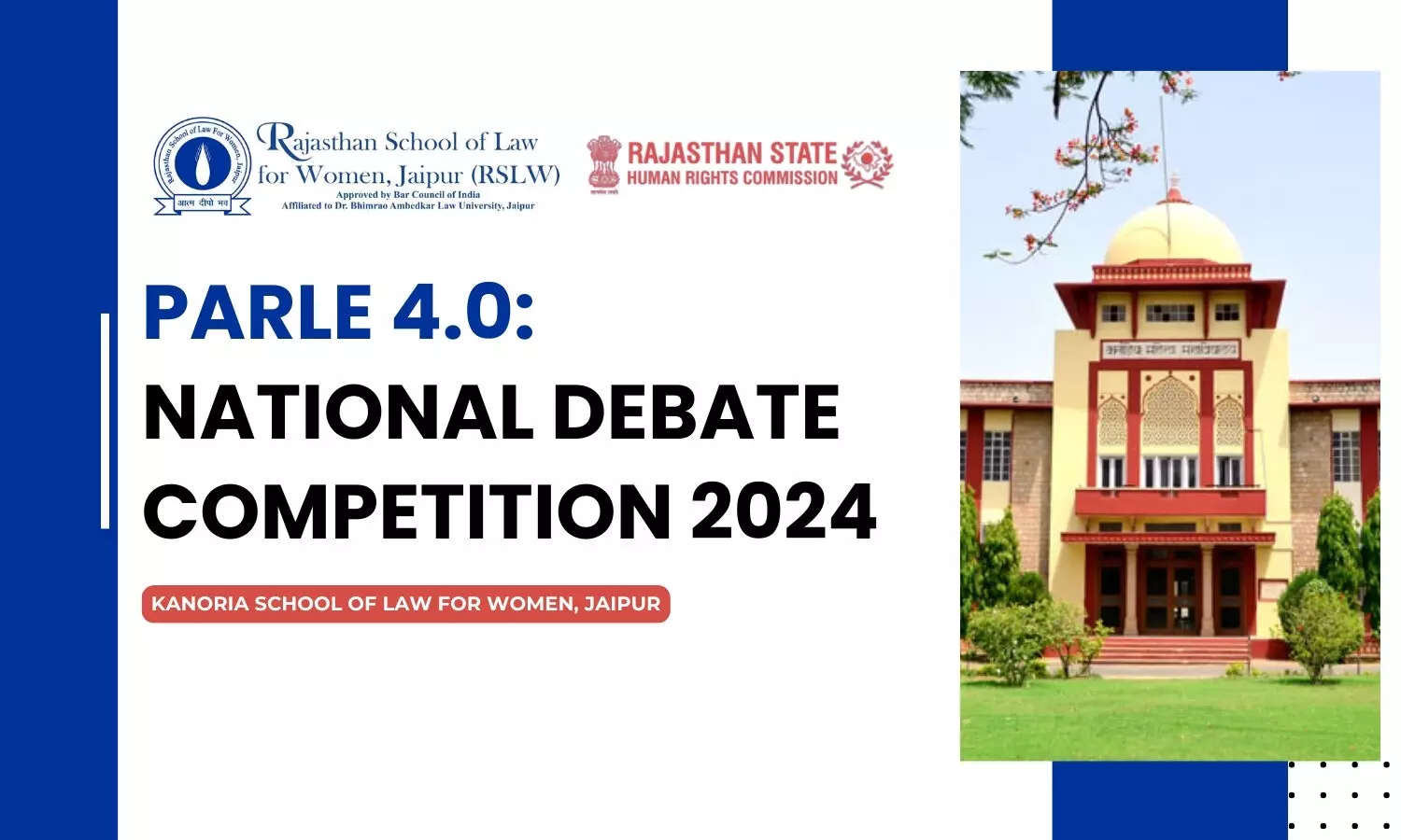 Kanoria School of Law for Women, Jaipur in association with Rajasthan State Human Rights Commission is organizing the Parle 4.0: National Debate Competition on May 16th & 17th 2024.