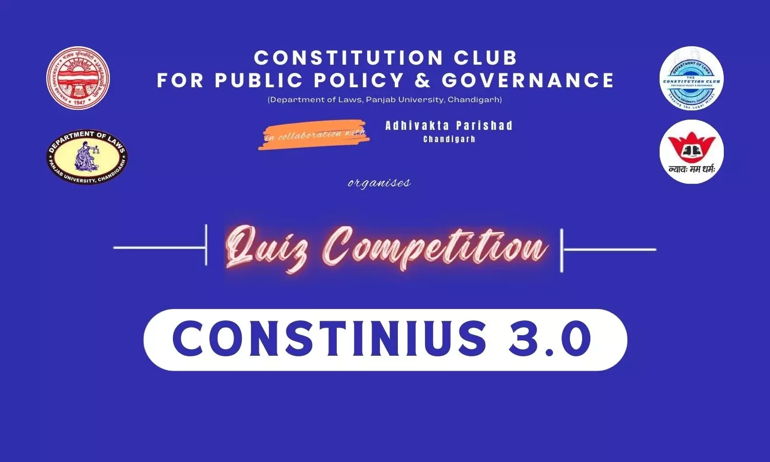 Constitutional Club for Public Policy and Governance, Department of Laws, Panjab University is organising the third edition of their Quiz Competition "Constnius 3.0" in collaboration with Adhivakta Parishad Chandigarh.