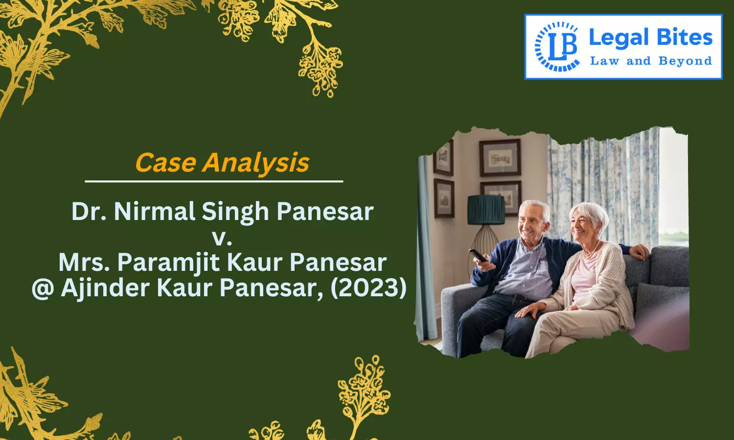 The Case Analysis: Dr. Nirmal Singh Panesar v. Mrs. Paramjit Kaur Panesar@ Ajinder Kaur Panesar (2023), focuses on a ruling by the highest court which refused to grant the appellant a divorce