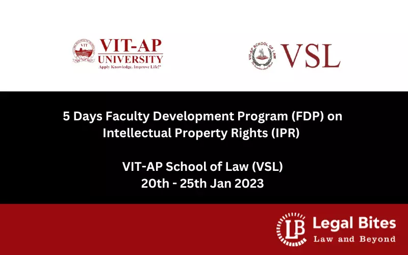 Five Days Faculty Development Program (FDP) on Intellectual Property Rights (IPR) | VIT-AP School of Law (VSL) | 20th - 25th Jan 2023