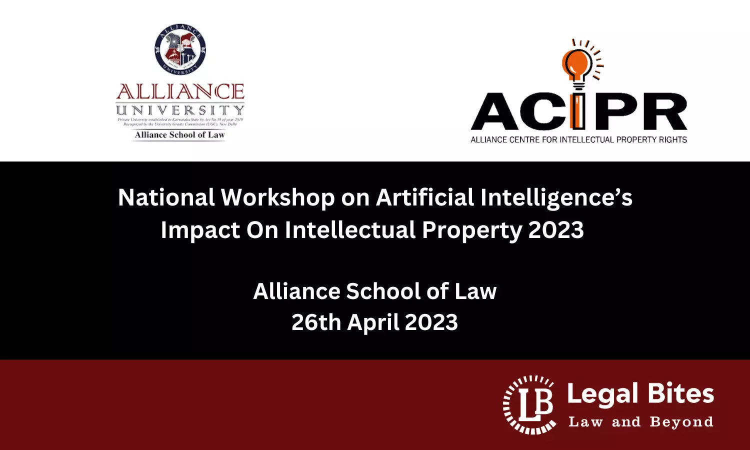 Alliance Centre for Intellectual Property Rights (ACIPR) under the aegis of Alliance School of Law, Alliance University, Bengaluru is organizing a "NATIONAL WORKSHOP ON ARTIFICIAL INTELLIGENCE’S IMPACT ON INTELLECTUAL PROPERTY" on April, 26th 2023 in commemoration of World Intellectual Property Day, 2023.