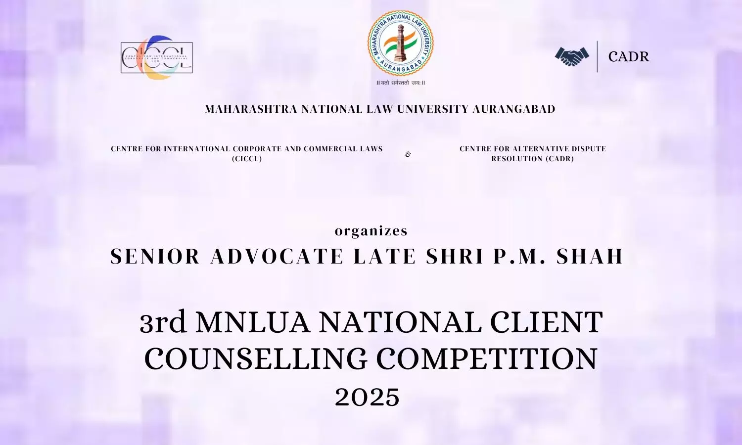 Maharashtra National Law University, Aurangabad is organizing the Senior Advocate Late Shri P.M. Shah 3rd MNLUA National Client Counselling Competition (8th-9th March 2025).