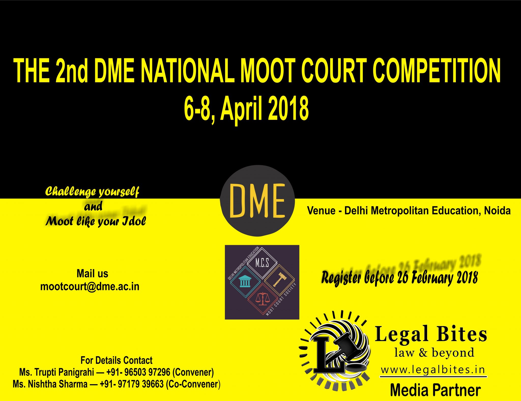 Delhi Metropolitan Education Moot Court Society (DMEMCS) is proud to announce its 2nd National Moot Court Competition to be held in April 2018. Enticing more than 40 teams this time, we cordially invite the teams from your esteemed Institution.
