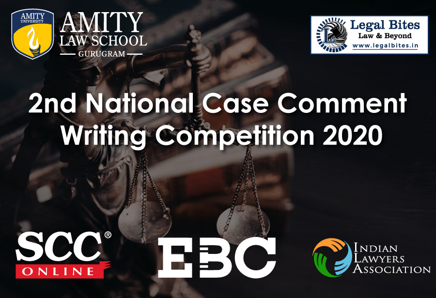 Amity Law School is pleased to announce the Second edition of its Online Amity National Case Comment Writing Competition 2020 in collaboration with SCC ONLINE, Indian Lawyers Association, and Legal Bites. This event will test your analytical skills and prowess in reviewing a judgment and Landmark Cases.