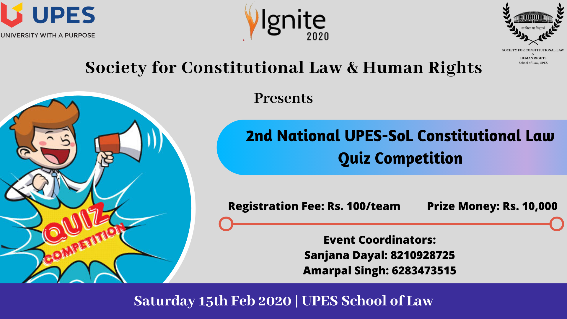 School of Law, UPES is organizing the second edition of its National UPES-SoL Constitutional Law Quiz Competition on 15th February 2020.