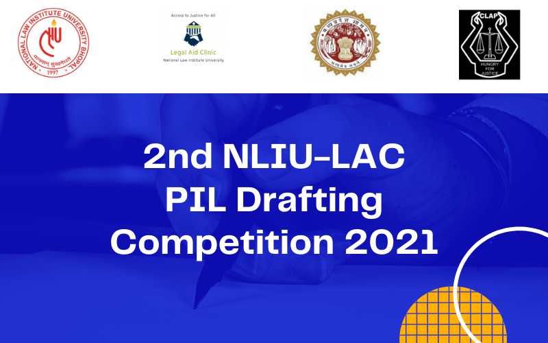 2nd NLIU LAC PIL Drafting Competition will be organised by the NLIU-LAC in collaboration with the Dept. of public relations of the M.P. government (‘Jan Sampark’) & the Committee for Legal Aid to Poor (‘CLAP’) on Constitution Day i.e., 26th of November 2021. The rules of the competition are: