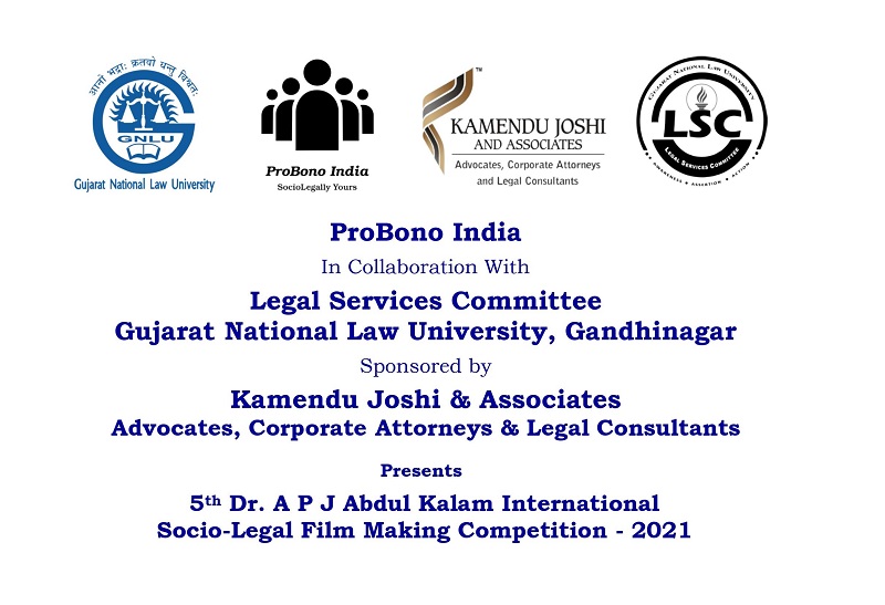 5th Dr. A P J Abdul Kalam International Socio-Legal Film Making Competition 2021 is being organised by ProBono India in collaboration with Legal Services Committee Gujarat National Law University, Gandhinagar sponsored by Kamendu Joshi & Associates Advocates, Corporate Attorneys & Legal Consultants.