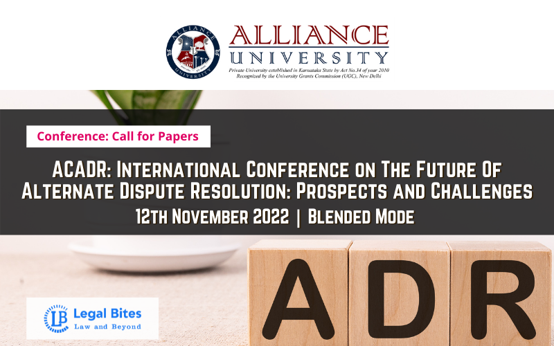 Alliance Centre for Alternative Dispute Resolution (ACADR), Alliance School of Law is organising an International Conference on “THE FUTURE OF ALTERNATE DISPUTE RESOLUTION: PROSPECTS AND CHALLENGES”.