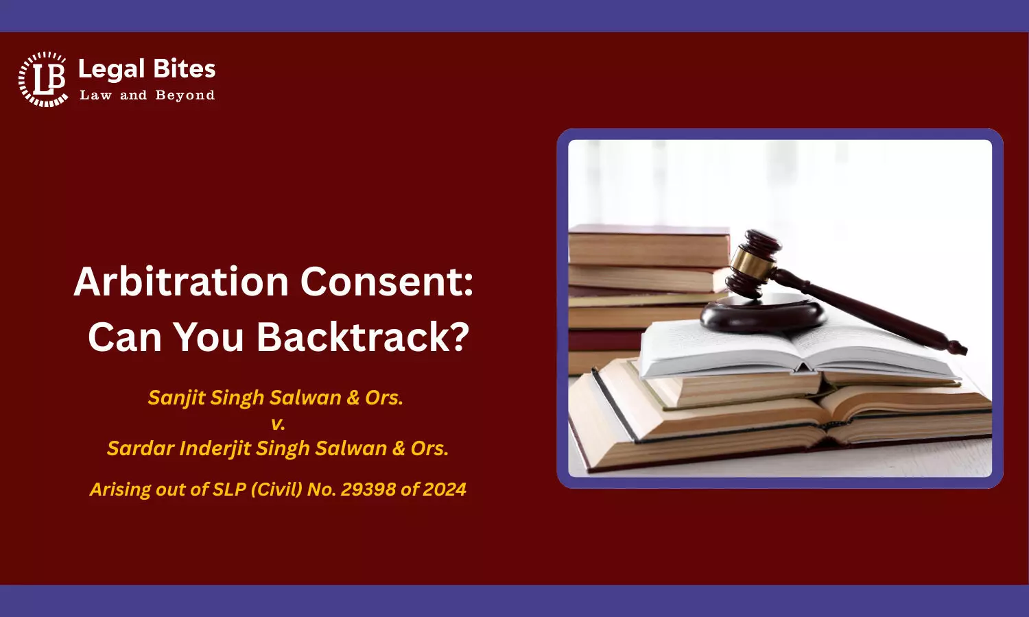 The Supreme Court in Sanjit Singh Salwan has clarified that consent to arbitration and acceptance of an award estops parties from later challenging it on non-arbitrability grounds, particularly when such an award is embodied in a consent decree.