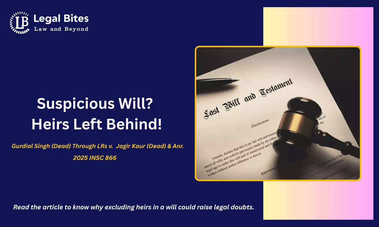The 2025 Supreme Court decision in Gurdial Singh (Dead) Through LRs v. Jagir Kaur (Dead) & Anr. (2025 INSC 866) brings this issue to the forefront, reiterating key principles that govern the validity of Wills and the weight of "suspicious circumstances."