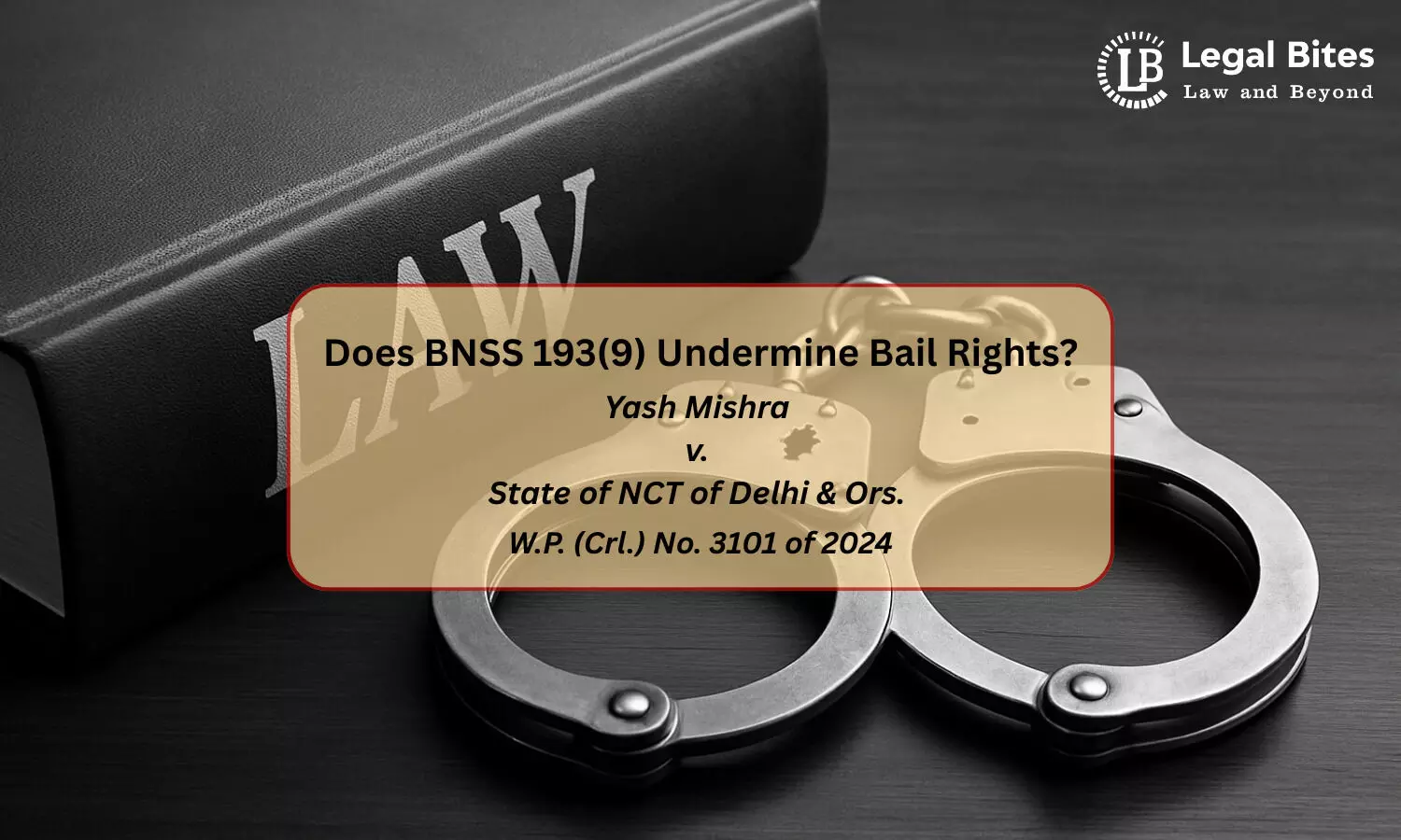 In Yash Mishra v. State of NCT of Delhi & Ors. (2025), the Delhi High Court examined whether Section 193(9) effectively camouflages or dilutes the statutory and constitutional right to default bail and personal liberty under Article 21 of the Constitution.