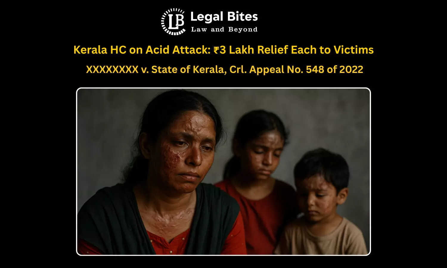 Kerala HC delivers strong message in acid attack case, upholding conviction & awarding ₹3 lakh compensation each to the wife and children victims.;