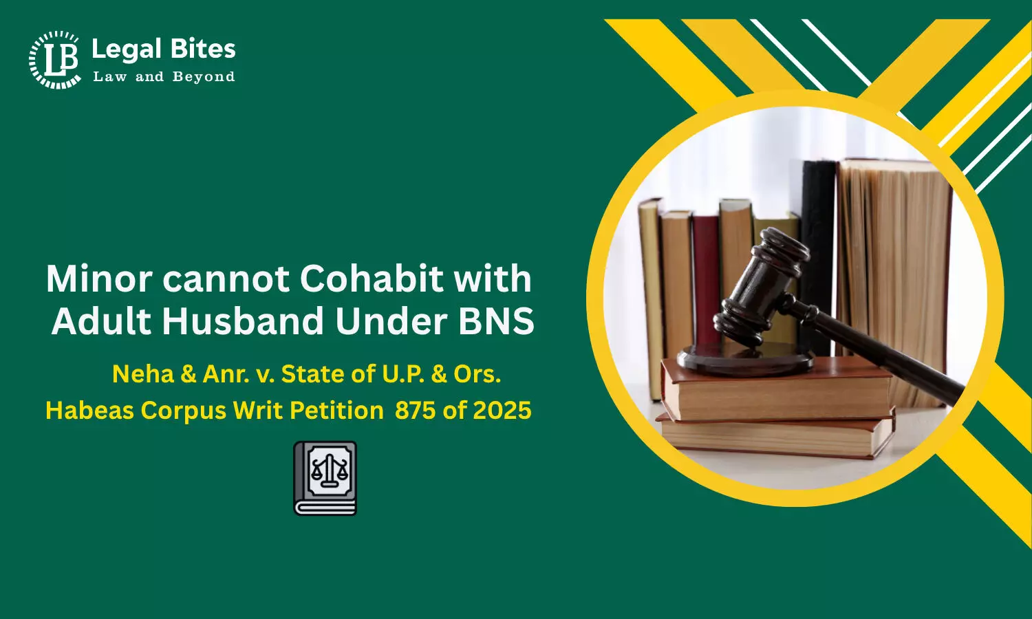 Allahabad High Court in Neha & Anr. v. State of U.P. & Ors., Habeas Corpus Writ Petition No. 875 of 2025, delivered a landmark judgment reaffirming the inviolability of the age of consent fixed at 18 years under the Bharatiya Nyaya Sanhita, 2023 (BNS).The Court categorically ruled that a minor girl’s cohabitation with an adult man, even under the guise of marriage, is impermissible in law. The verdict underscores the judiciary’s unwavering stance that the protection of...