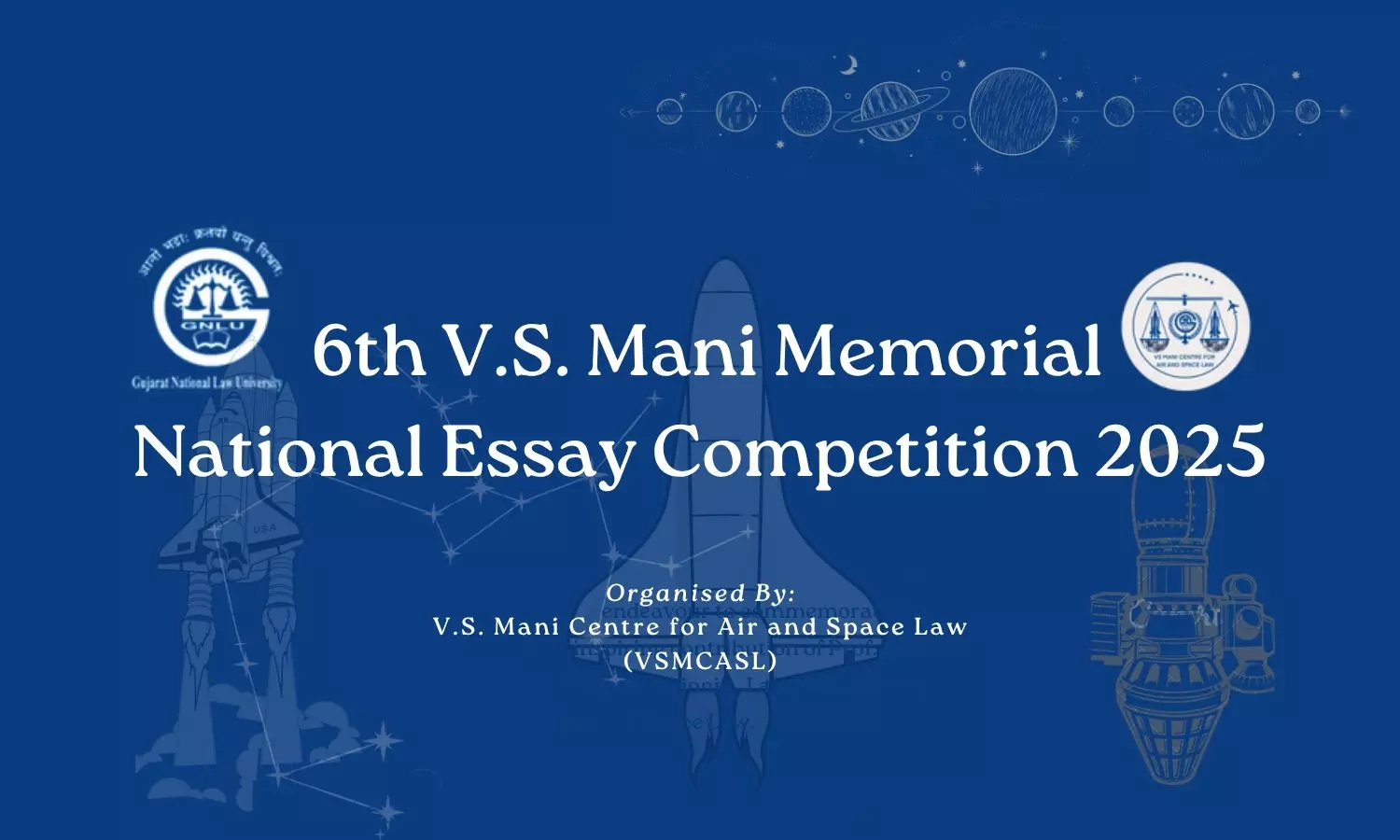 V.S. Mani Centre for Air and Space Law (VSMCASL), Gujarat National Law University (GNLU), India is organising the 6th V.S. Mani Memorial National Essay Competition, 2025, sponsored by Prof. (Dr.) Stephan Hobe, Director, Institute of Air Law, Space Law and Cyber Law, University of Cologne, Germany.
