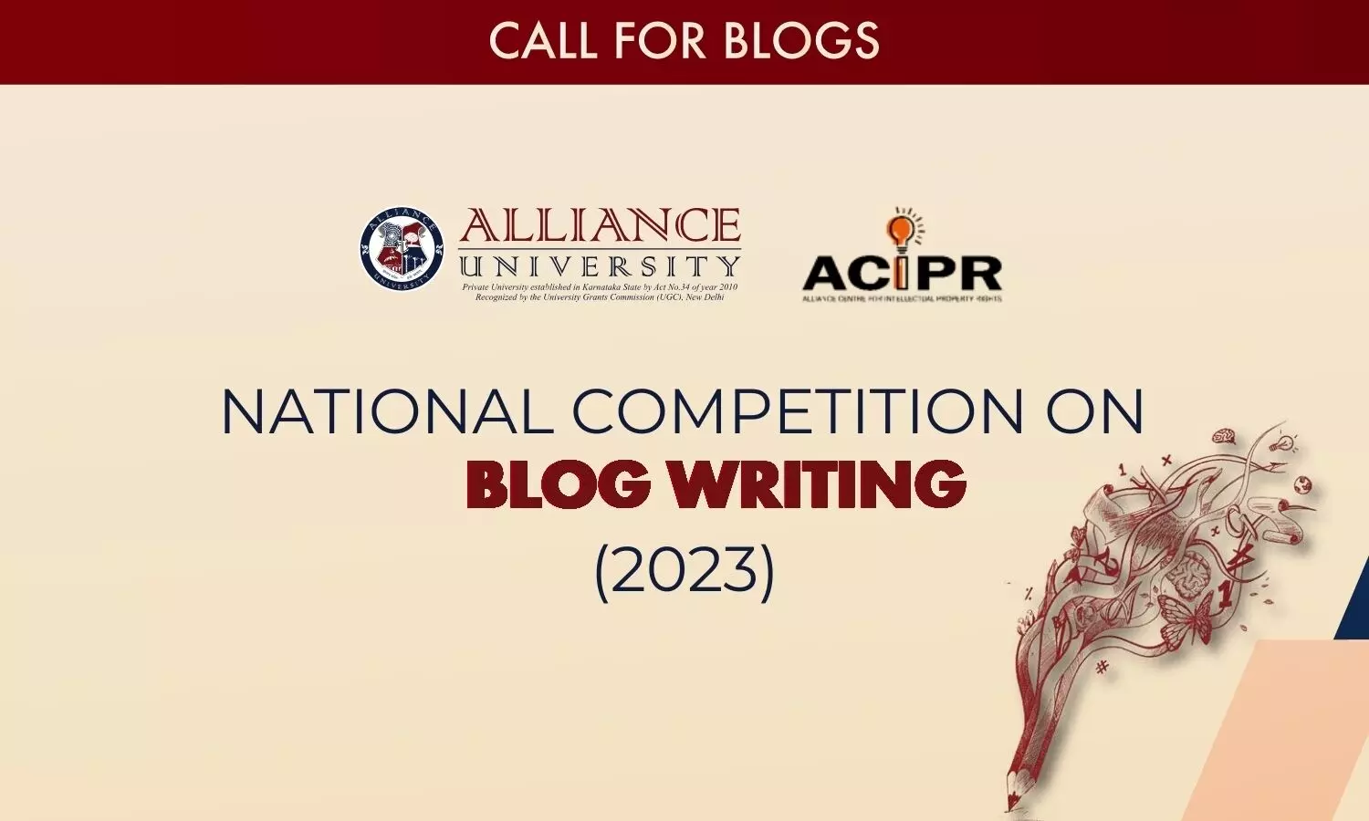 Alliance Centre for Intellectual Property Rights (ACIPR), Alliance University is organising a National Competition on Blog Writing 2023.;