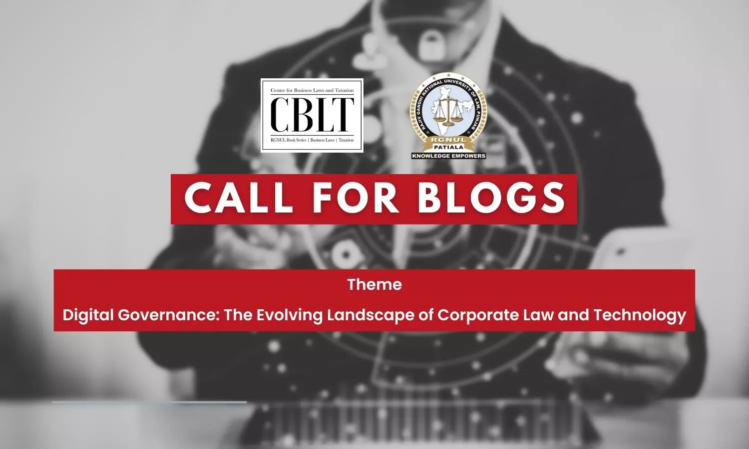 Centre for Business Laws and Taxation, RGNUL invites blog submissions on the theme of "Digital Governance: The Evolving Landscape of Corporate Law and Technology" from legal practitioners, advisors, academicians, and law students.