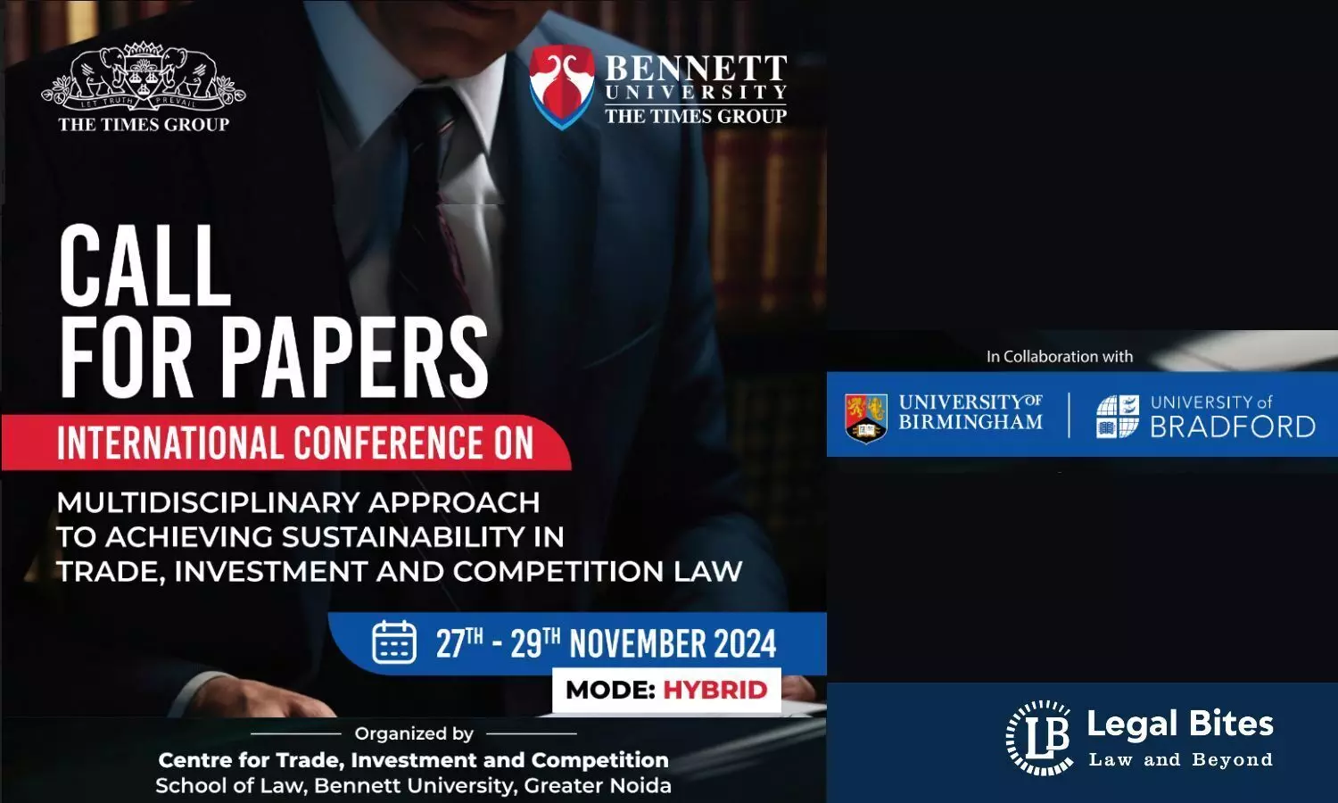 The Centre for Trade, Investment, and Competition (CTIC), in collaboration with the School of Law, Bennett University, is pleased to announce the International Conference on Multidisciplinary Approach to Achieving Sustainability in Trade, Investment, and Competition Law. The conference will be held in a hybrid mode from 27th to 29th November 2024 at Bennett University, Greater Noida.
