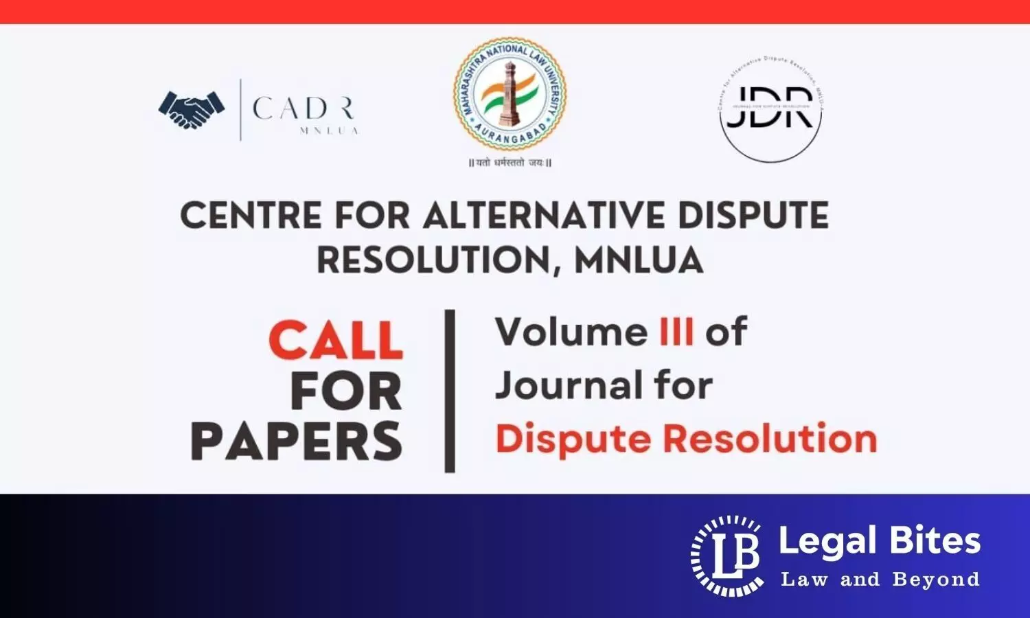 Call for Papers: Journal for Dispute Resolution (Volume III) by MNLU, Aurangabad’s Centre for Alternative Dispute Resolution (CADR)