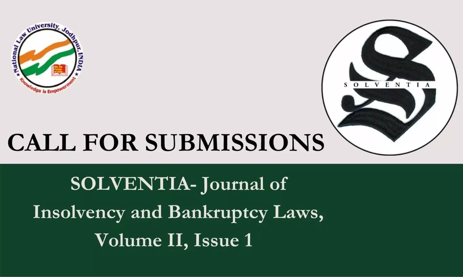 Solventia - Journal of Insolvency and Bankruptcy Laws, National Law University, Jodhpur, invites submissions for its Volume 2 Issue 1.