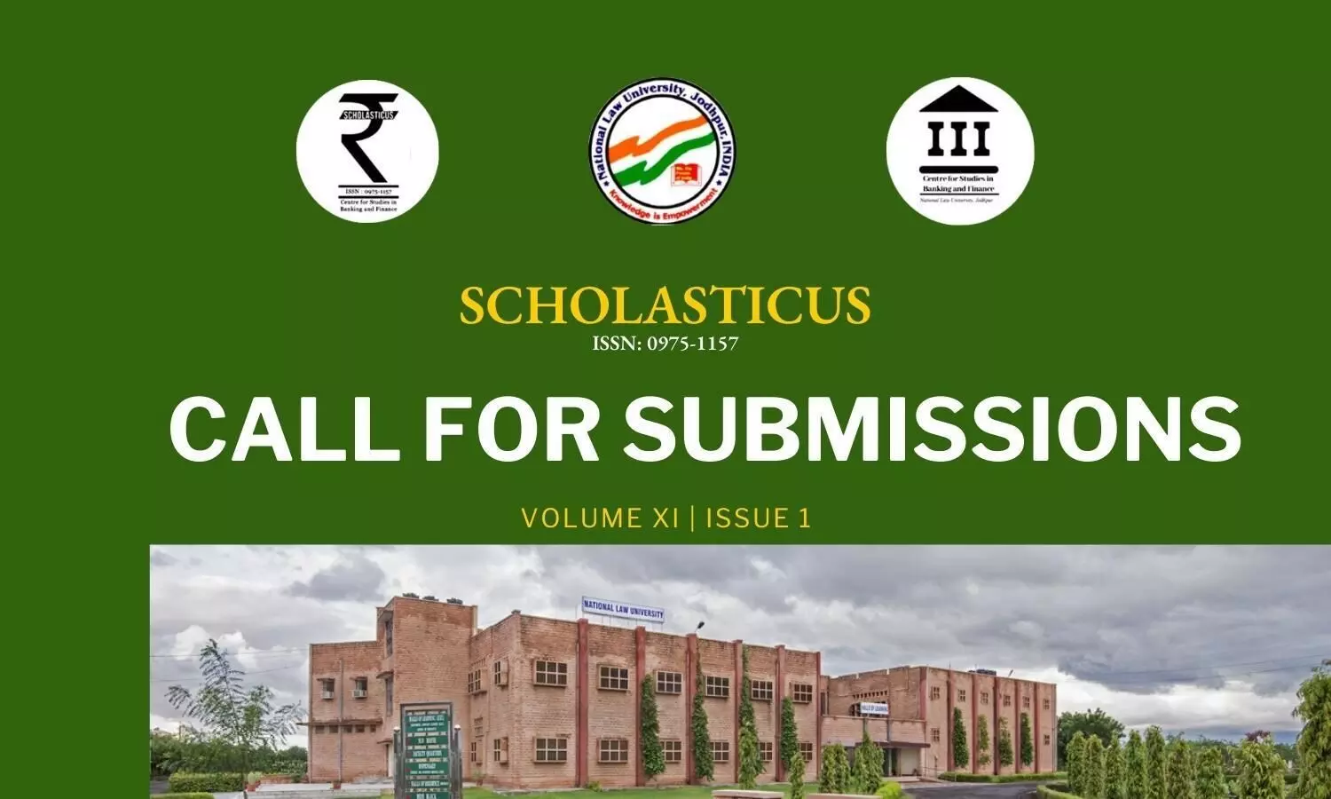 Centre for Studies in Banking and Finance, NLU Jodhpur is inviting submissions for Volume XI Issue 1 | NLU Jodhpur of its Publication "Scholasticus".
