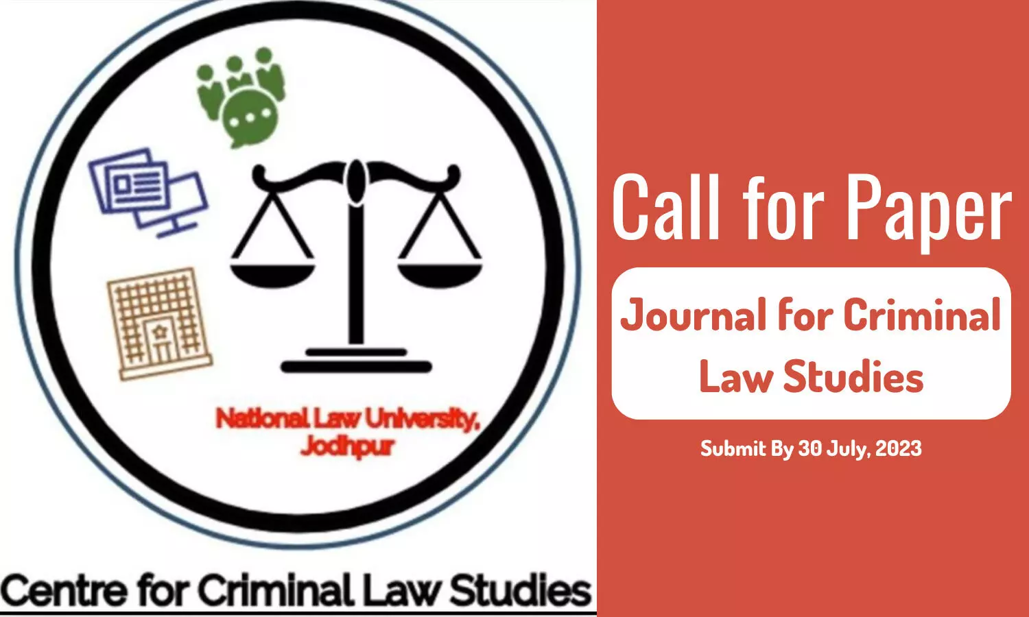 Call for Papers is being invited for Journal for Criminal Law Studies by National Law University, Jodhpur by July 30, 2023.;