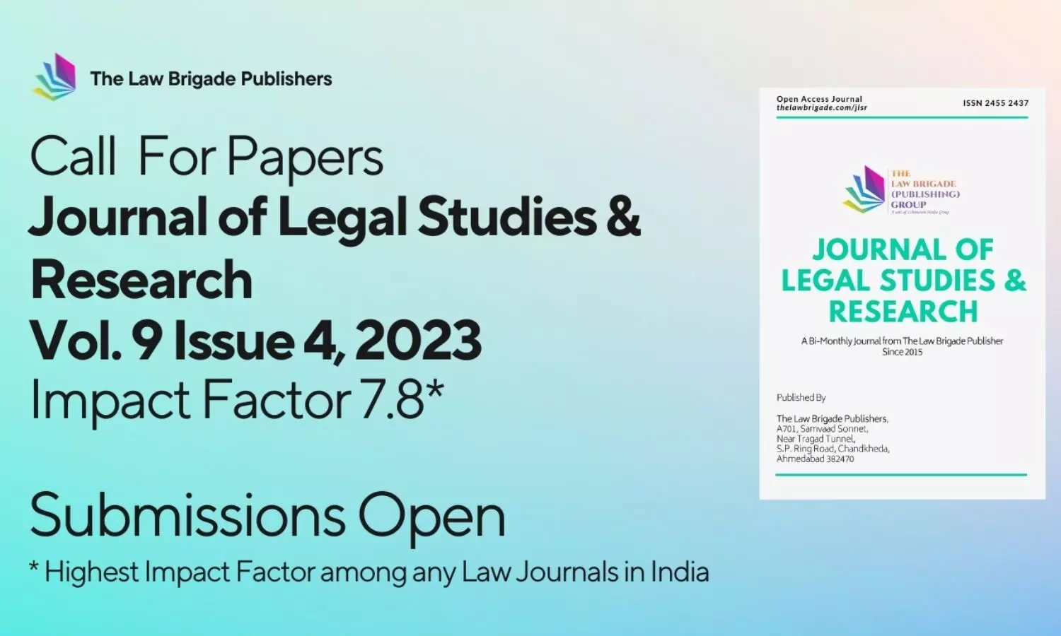 Call for Papers: Journal of Legal Studies and Research Volume 9 Issue 4 | Submity by August 31