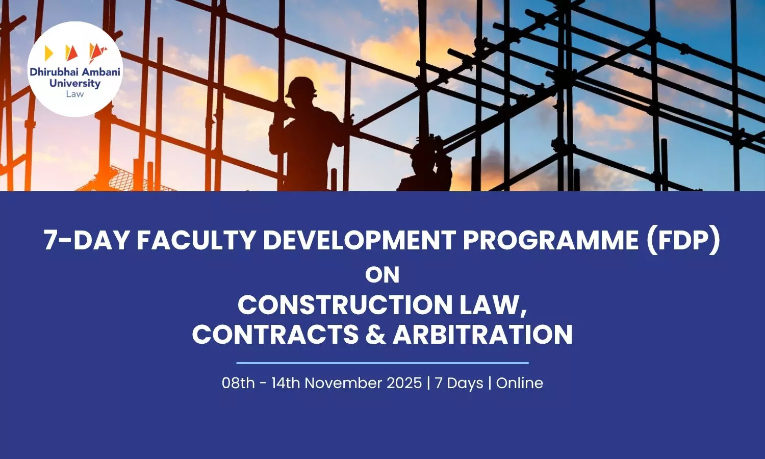 Dhirubhai Ambani University School of Law is organizing a FDP on Construction Law, Contracts, and Arbitration. Scroll down for more details!;