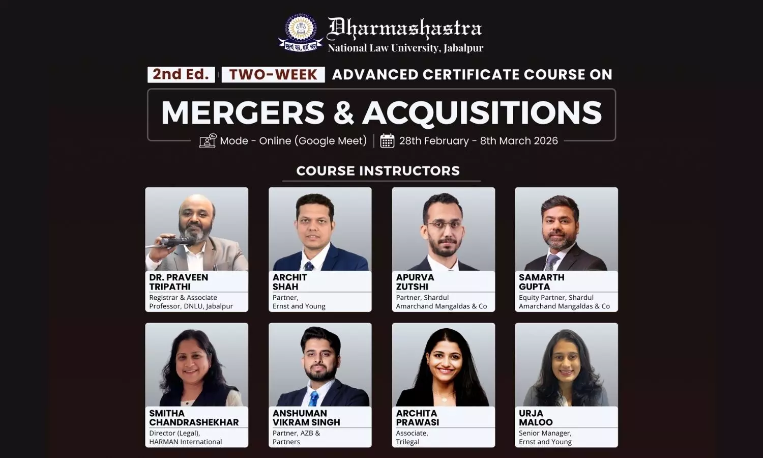 DNLU Jabapur is conducting an Online Certificate Course on Mergers & Acquisitions commencing from 28th February. Scroll down for more details!