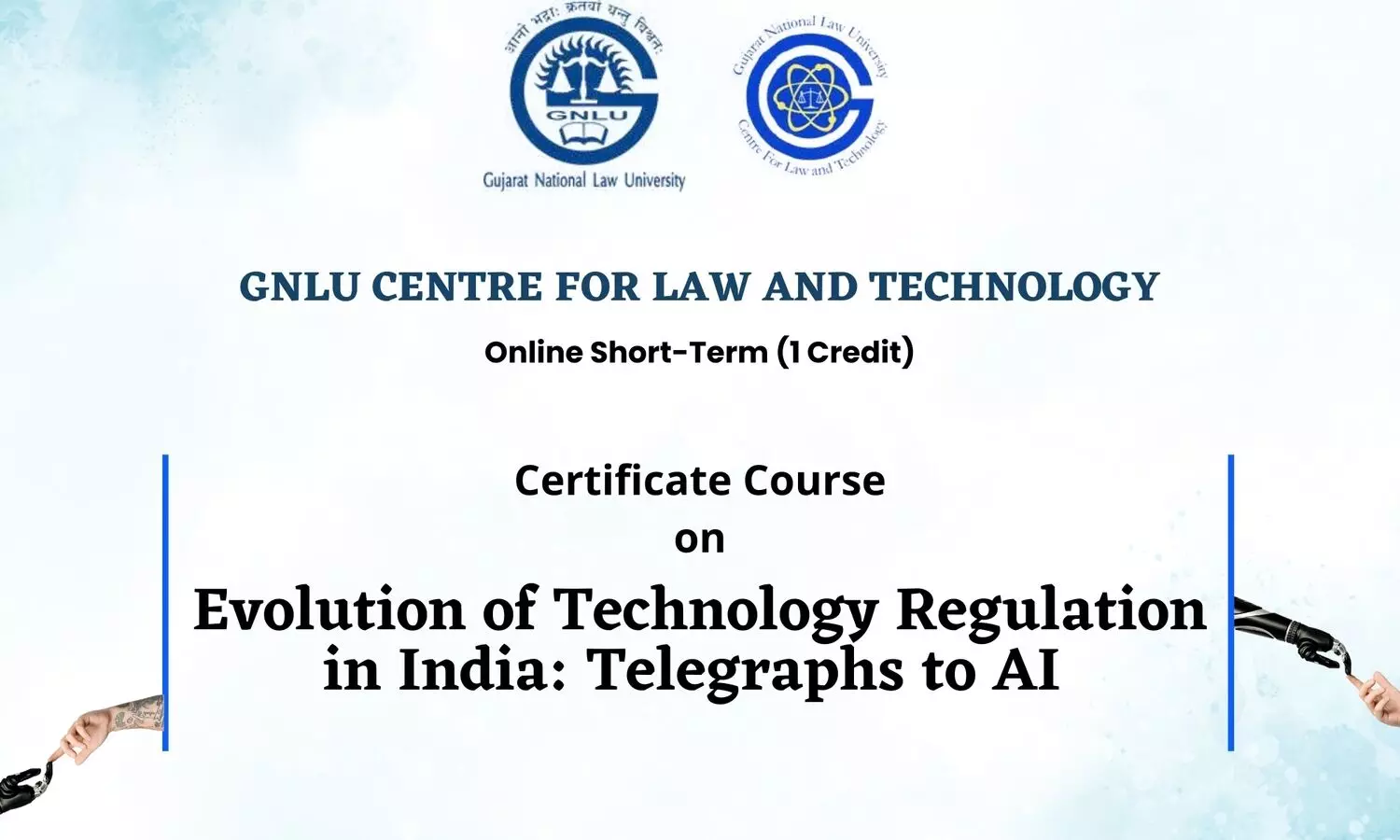 GNLU Centre for Law and Technology is organising an Online Short-Term (1 credit) Certificate Course on "Evolution of Technology Regulation in India: Telegraphs to AI" in July 2025.