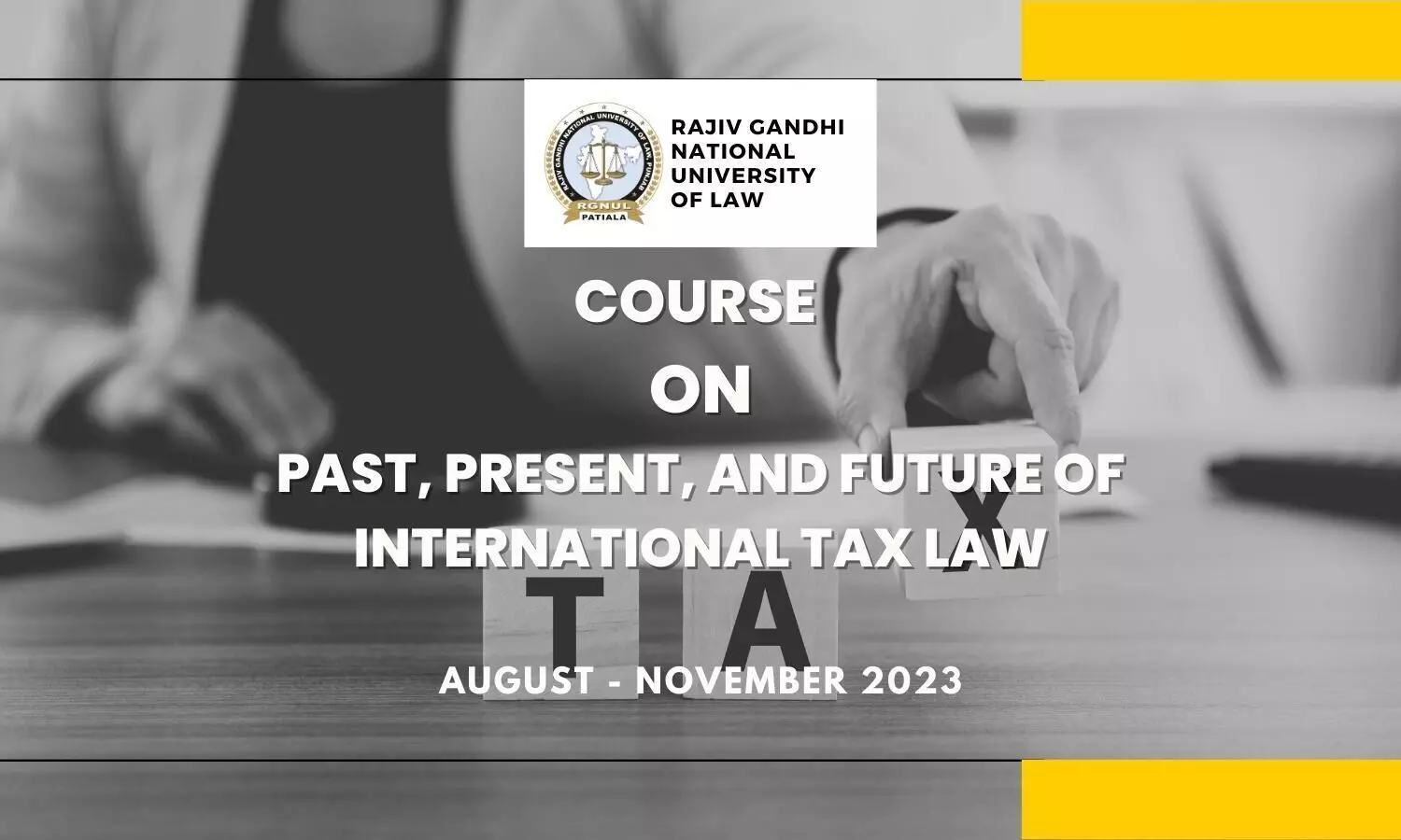 Rajiv Gandhi National University of Law, Punjab is organising a two-credit course Discussing the issues under International Taxation and Double Tax Avoidance Agreements along with their Interpretation.;