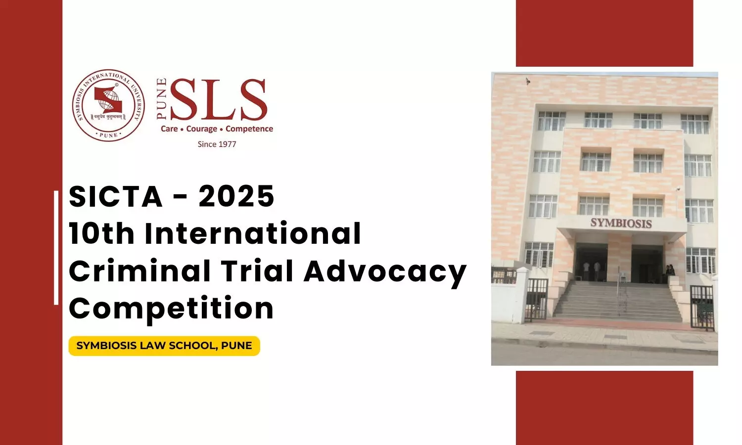 SLS Pune is organizing the 10th Symbiosis Law School, Pune – International Criminal Trial Advocacy Competition, 2025 - SICTA 2025. Scroll down for more details!;