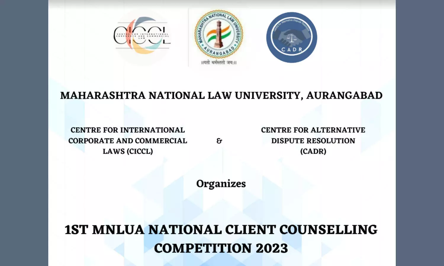 Maharashtra National Law University, Aurangabad is organizing 1st MNLUA National Client Counselling Competition on 18th-19th March 2023.;