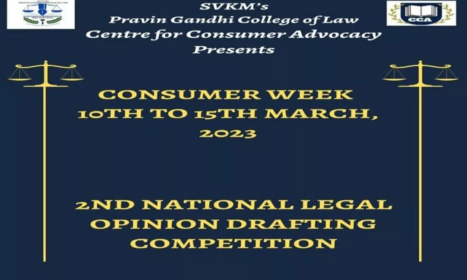 The 2nd National Legal Opinion Drafting Competition 2023 is being organised by SVKM's Pravin Gandhi College of Law from 10-15 March.;
