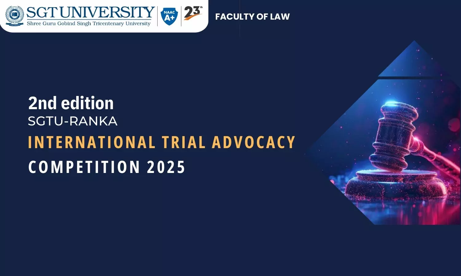 Faculty of Law, SGT University is organising its 2nd SGTU-RANKA International Trial Advocacy Competition, 2025, scheduled to be held from 27th-29th March 2025.