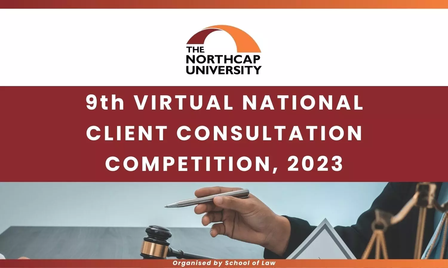 School of Law, The NorthCap University is organizing the 9th Virtual National Client Consultation Competition 2023. Scroll down for more details!