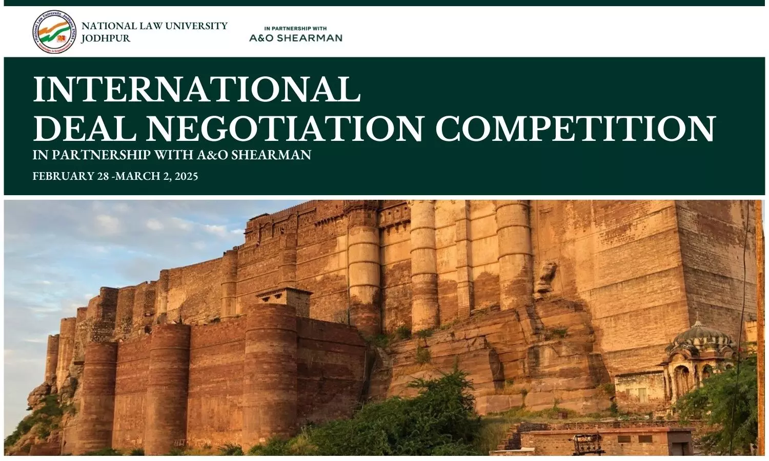 Allen & Overy Shearman–NLUJ International Deal Negotiation Competition, 2025 organised in Jodhpur. Scroll down for more details!;