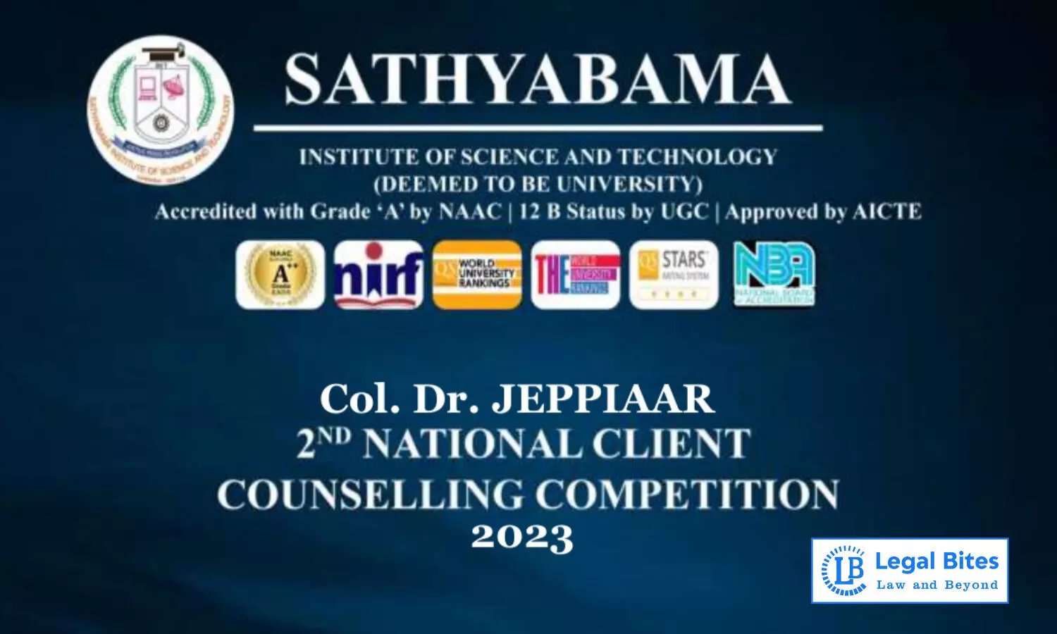 Sathyabama School of Law is organising Col. Dr. JEPPIAAR 2nd National Client Counselling Competition 2023;
