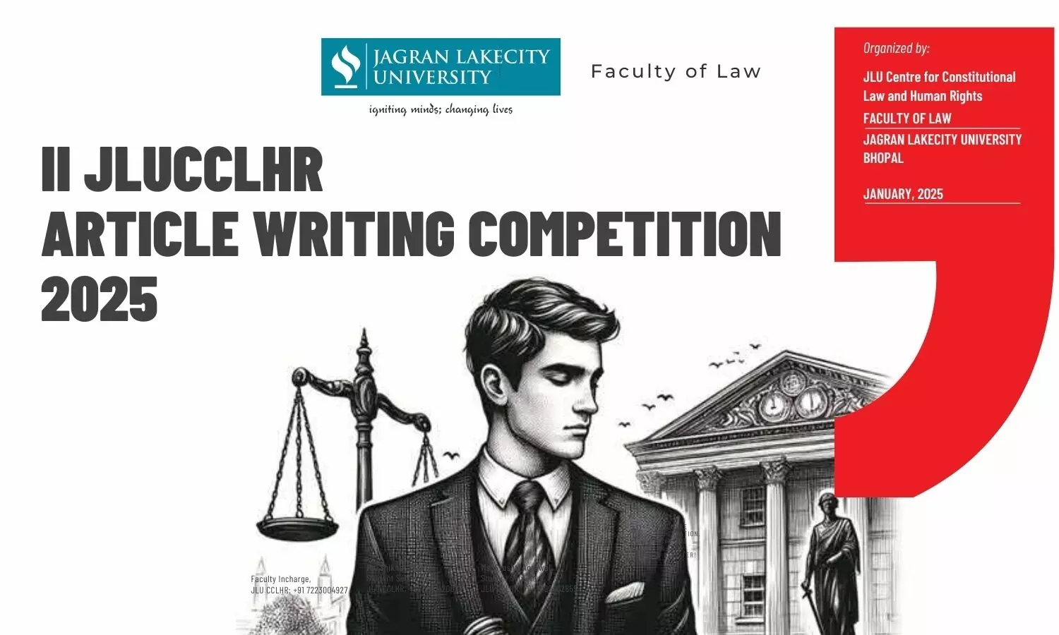 JLU Centre for Constitutional Law & Human Rights at the Faculty of Law, Jagran Lakecity University, Bhopal, is organizing II JLU CCLHR Article Writing Competition. Scroll for more details!;