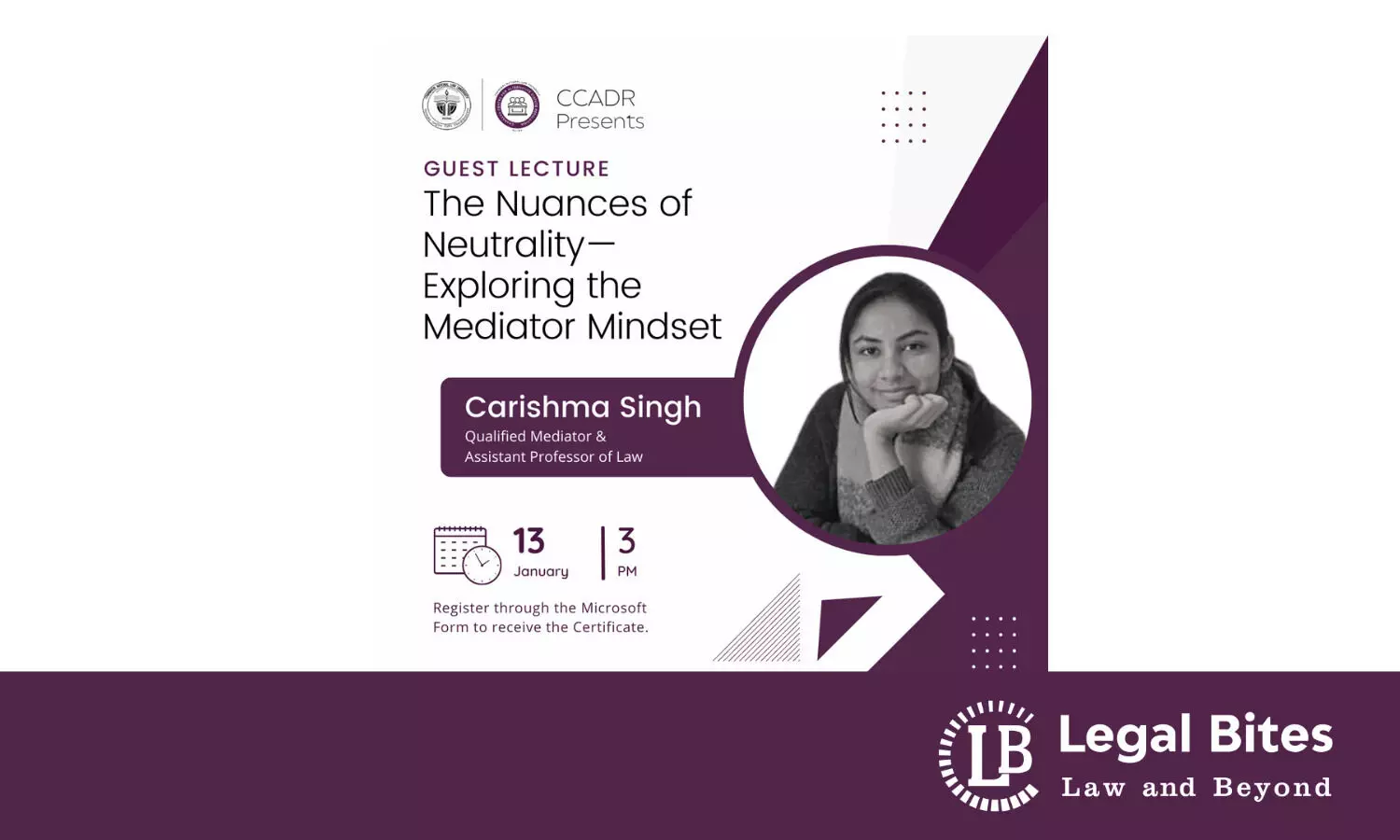 The CCADR, CNLU, is going to organise a guest lecture on “The Nuances of Neutrality: Exploring the Mediator Mindset” on 16th January, 2023..