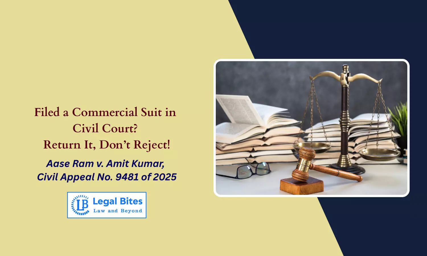 In civil litigation, procedural clarity is essential for ensuring justice is not only done but seen to be done. The question of whether a plaint can be returned instead of being rejected has often led to interpretational confusion, especially under the framework of the Code of Civil Procedure, 1908 (CPC). In the recent case of Aase Ram v. Amit Kumar, Civil Appeal No. 9481 of 2025, the Supreme Court of India has revisited and clarified the scope and application of Order VII Rule 10 and Order VII Rule 11 CPC—particularly in the context of jurisdictional objections before Commercial Courts.
