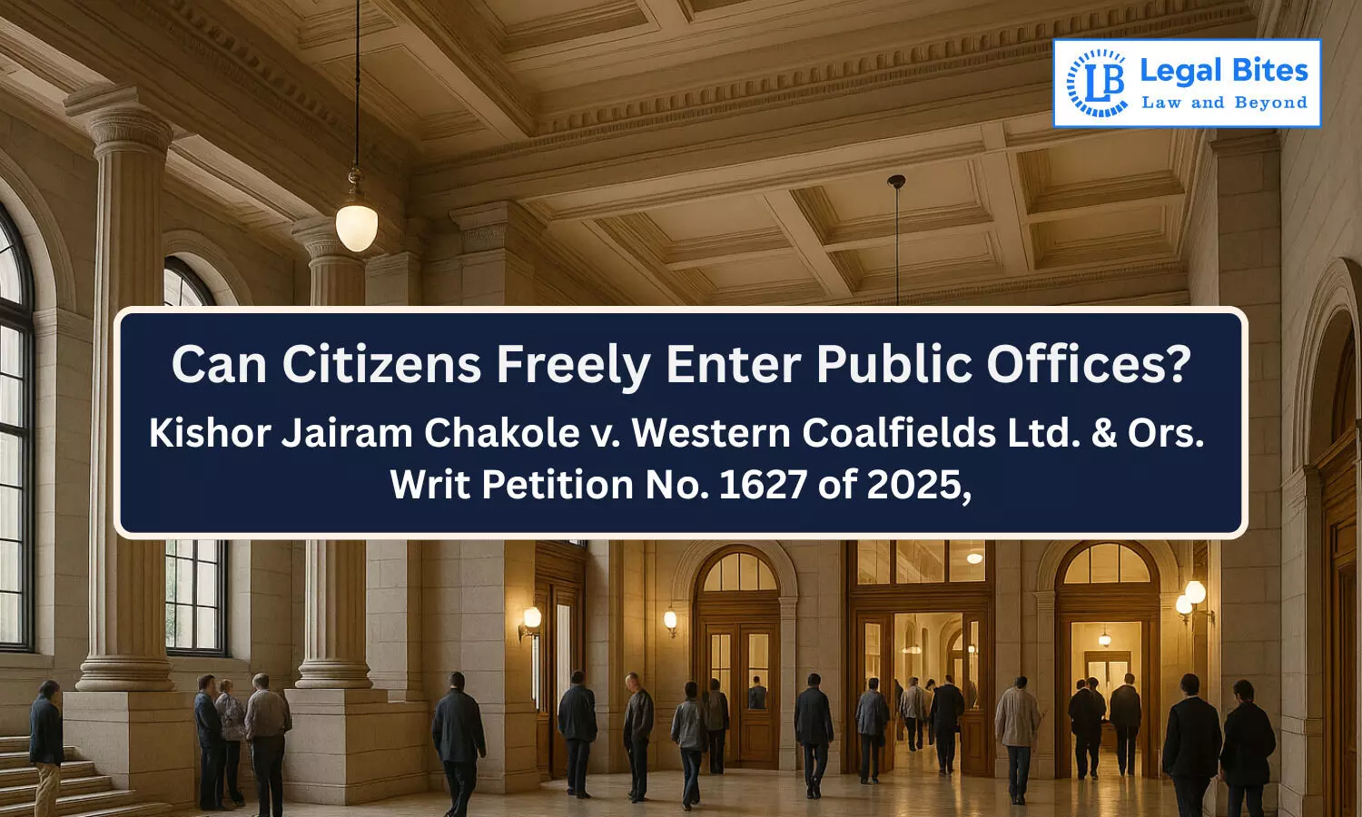 This issue was recently examined in depth by the Bombay High Court (Nagpur Bench) in Kishor Jairam Chakole v. Western Coalfields Ltd. & Ors. (Writ Petition No. 1627 of 2025, decided on 6 October 2025). The Court clarified that while citizens are entitled to access government institutions for legitimate purposes, this right is not absolute. Administrative order, discipline, and security justify reasonable restrictions on public entry.