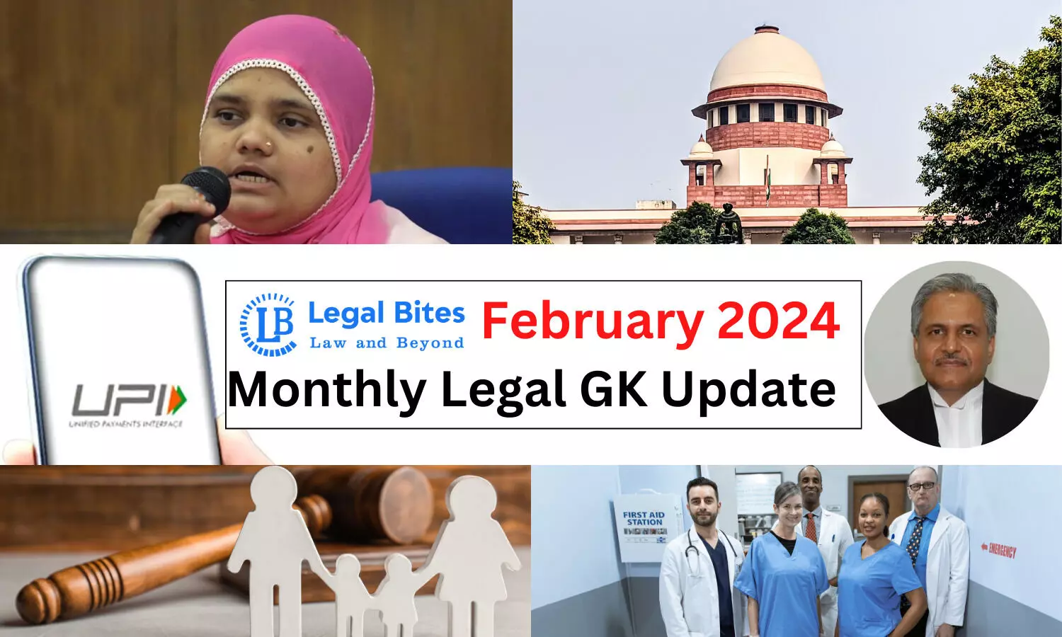 Here are Legal Bites February 2024 monthly GK updates. The notable happenings of the months were related to the apex court, Uniform Civil Code Bill 2024, Project Vatsalya, Kerala High Court and so on;