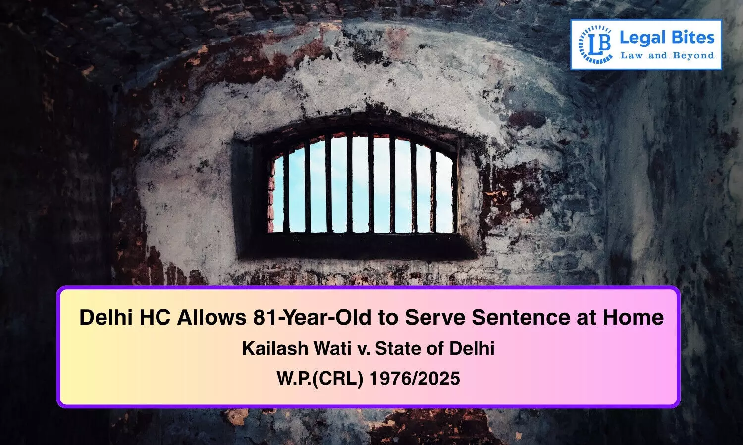 In a landmark judgment in Kailash Wati v. State of Delhi, W.P.(CRL) 1976/2025, the Delhi High Court on 12 November 2025 permitted an 81-year-old, bedridden convict to serve the remainder of her sentence at home and directed the Government of NCT of Delhi to frame a comprehensive policy for incapacitated prisoners. The Court held that convicts who, due to age or grave medical conditions, are physically incapable of returning to prison after parole cannot be left in a legal vacuum merely because existing prison rules do not contemplate such exceptional situations.