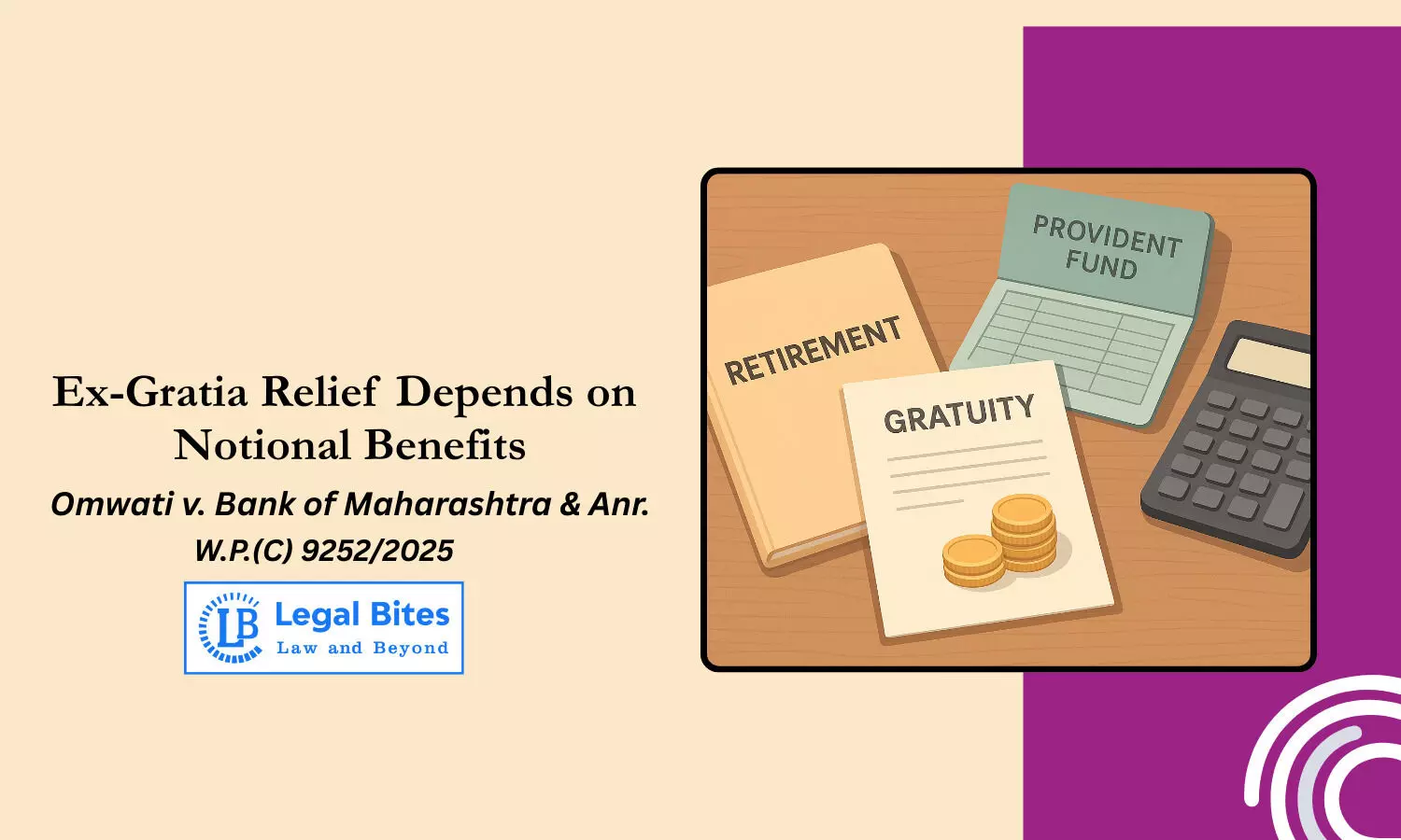 A recent decision of the Delhi High Court in Omwati v. Bank of Maharashtra (2025) has reignited debate on how eligibility for ex-gratia is determined, particularly the controversial question: Should notional interest on terminal benefits be treated as part of a family’s income when assessing indigence?