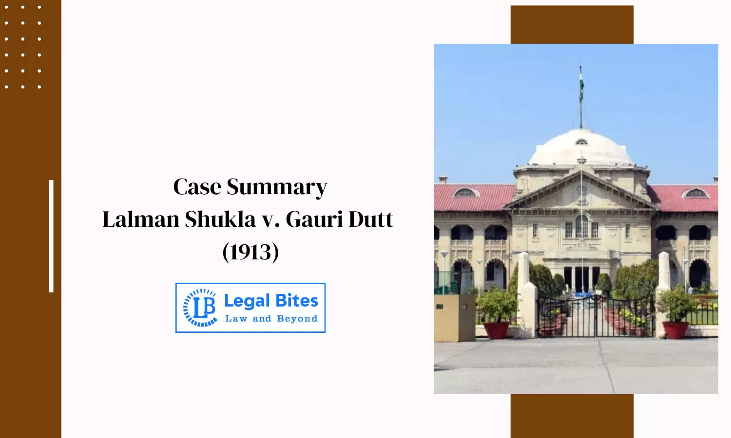 Case Summary: Lalman Shukla v. Gauri Dutt (1913) | Completion of Proposal Communication