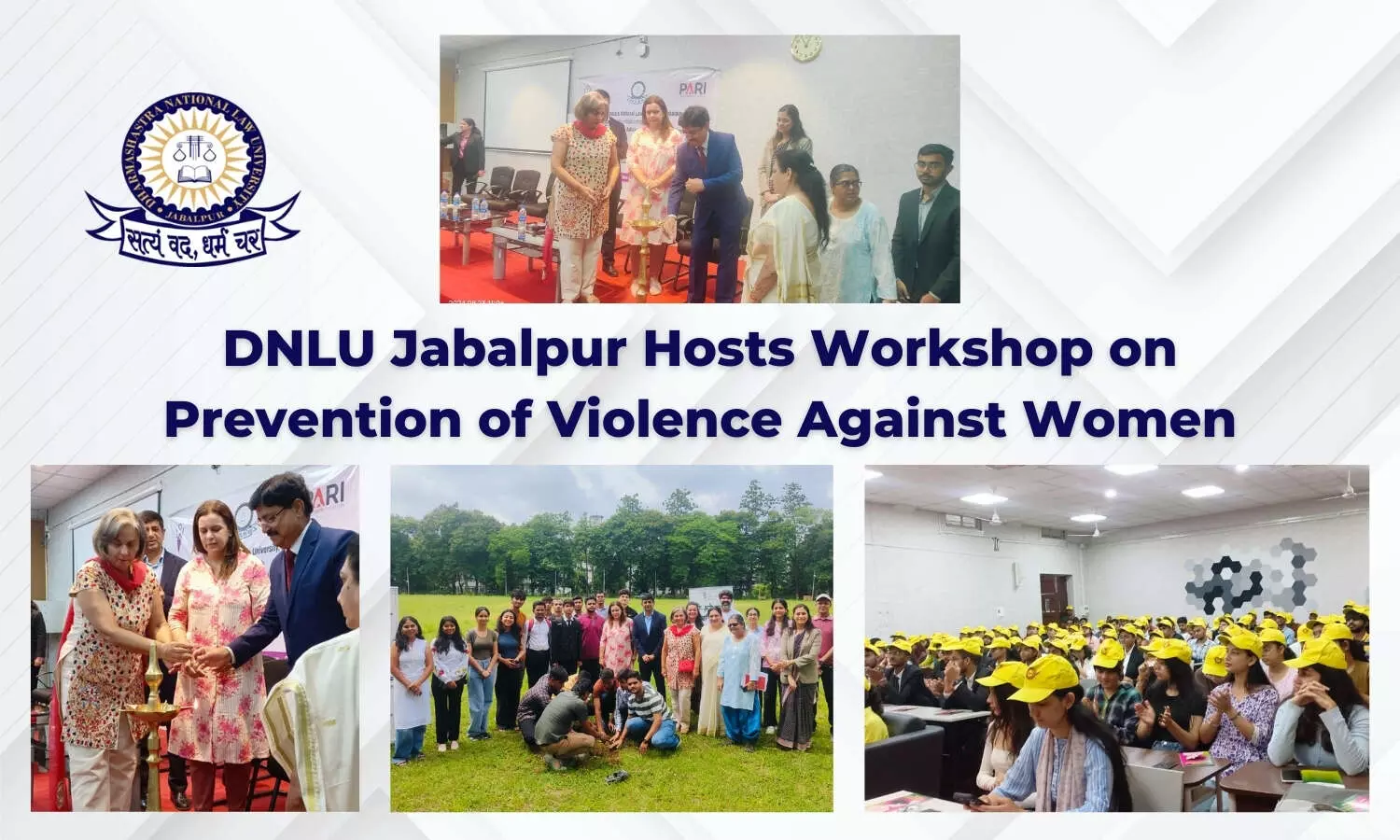 DNLU Jabalpur, in collaboration with SAFMA and PARI, hosted a workshop on the prevention of violence against women. Scroll down to read more!;