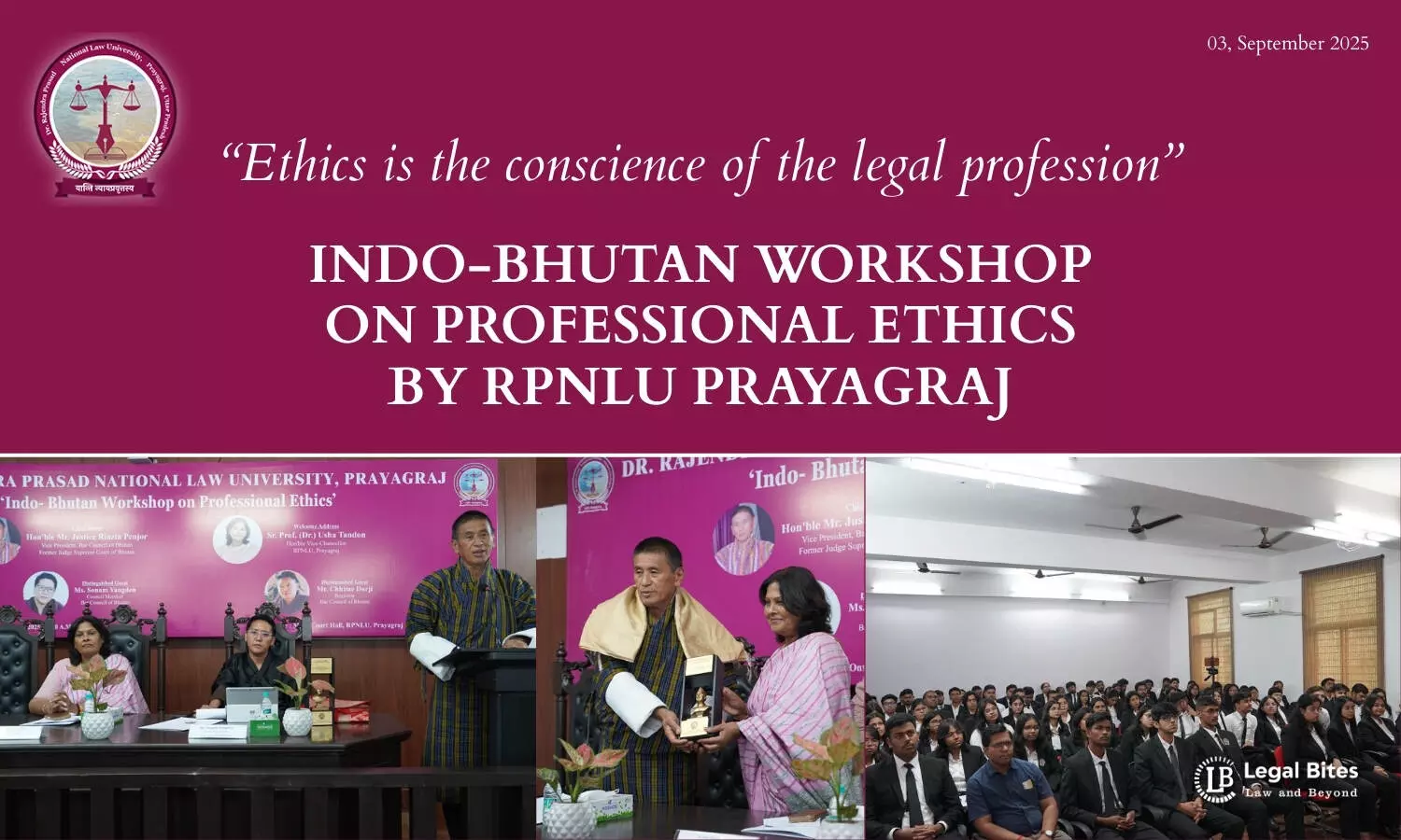 RPNLU Prayagraj hosted the Indo-Bhutan Workshop on Professional Ethics, uniting legal experts to discuss integrity, accountability, and judicial ethics. Scroll down to read more!;