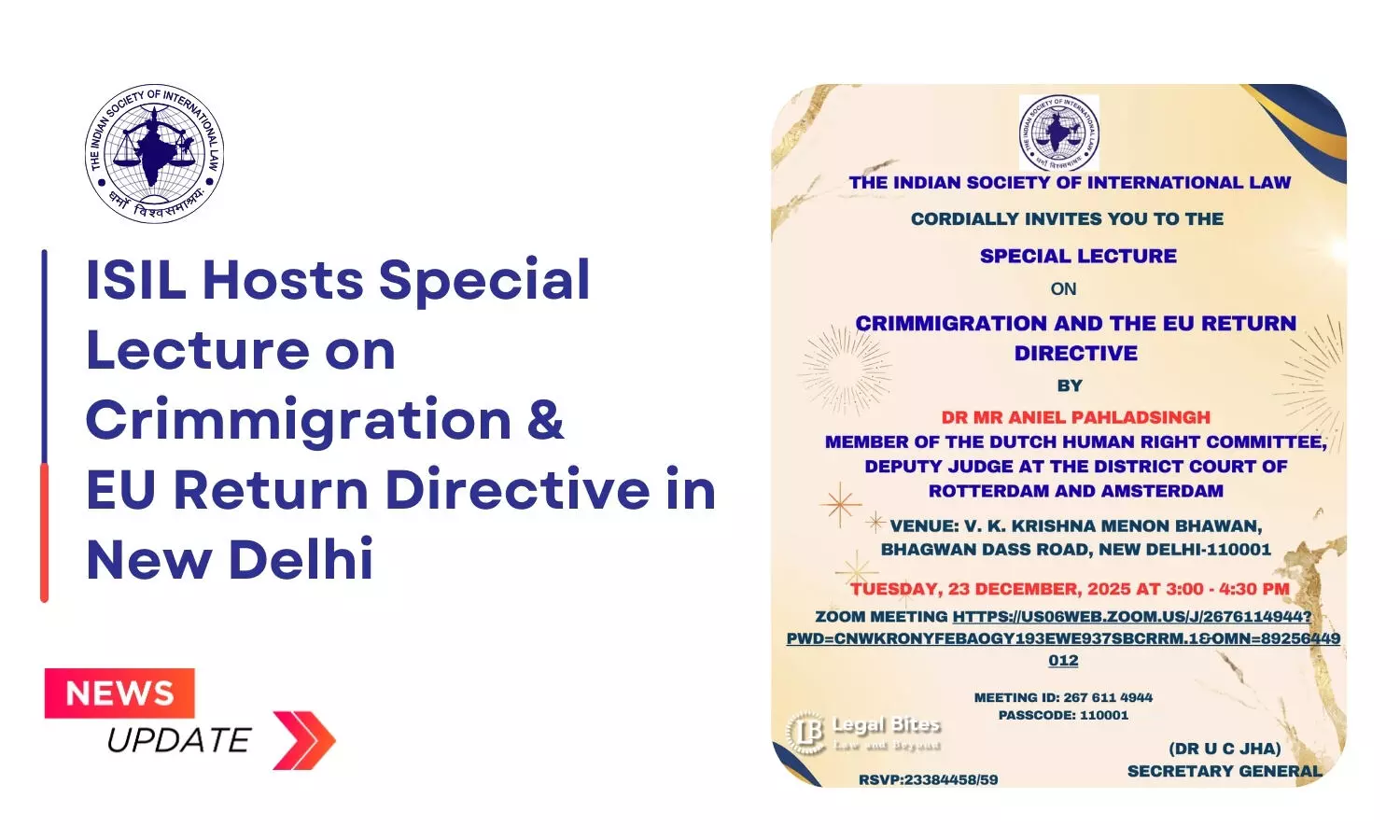 The Indian Society of International Law (ISIL) organised a Special Lecture on “Crimmigration and the EU Return Directive” on 23 December 2025 at V. K. Krishna Menon Bhawan, with simultaneous online participation via Zoom.