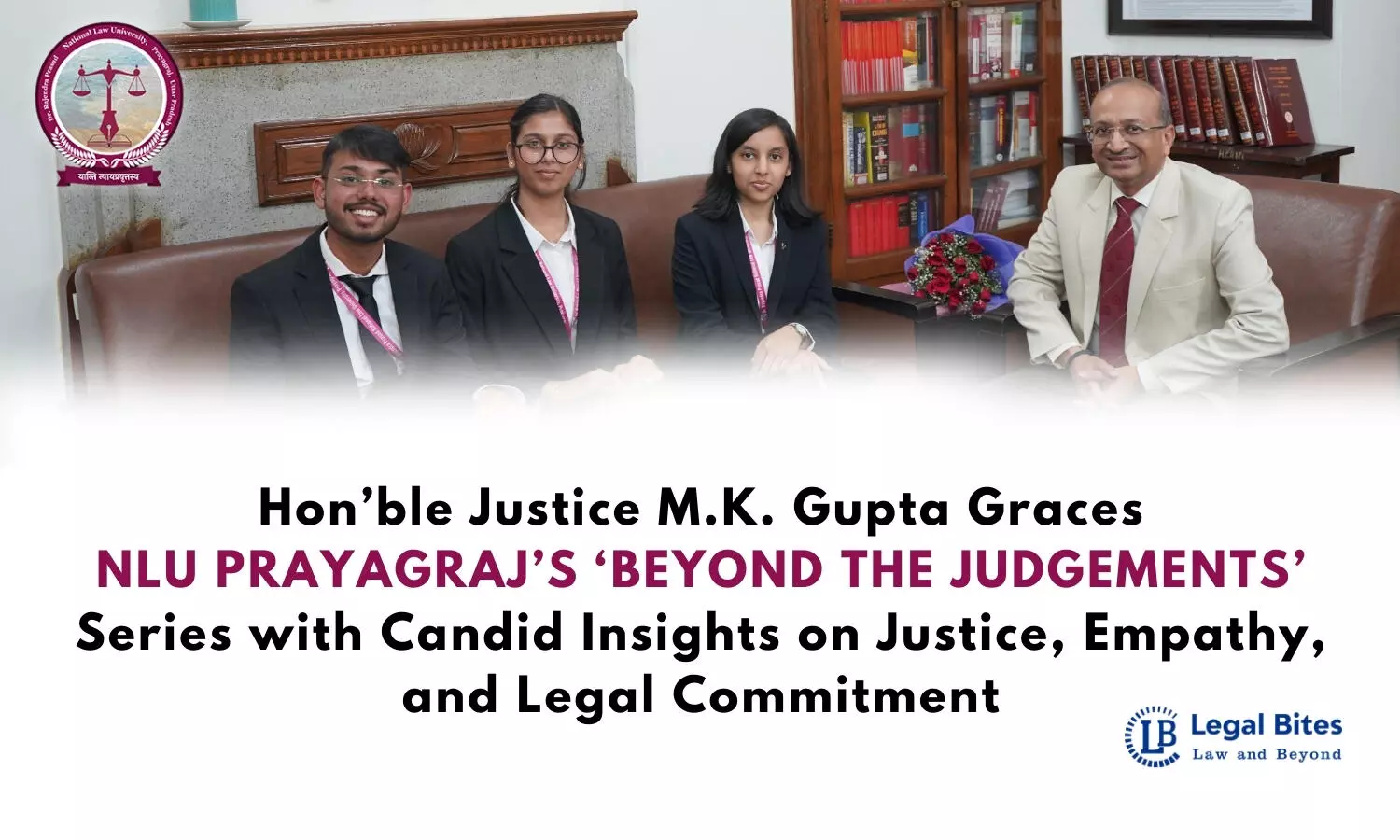 Hon’ble Justice M.K. Gupta discusses his legal journey, judicial empathy, and the future of law during NLU Prayagraj’s ‘Beyond the Judgements’ session. Scroll down to read more!;